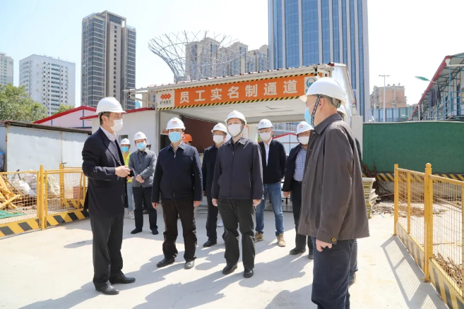 4月29日上午,武漢地鐵集團董事長、黨委書記張軍一行實地考察武漢建工集團承建的武漢市軌道交通8號線趙家條配套綜合開發(fā)項目一期工程,并召開座談會,了解項目疫情防控及復工復產(chǎn)情況。集團董事長、黨委書記應志剛,集團總經(jīng)理、黨委副書記王火生,集團黨委副書記、紀委書記、總工程師王愛勛,股