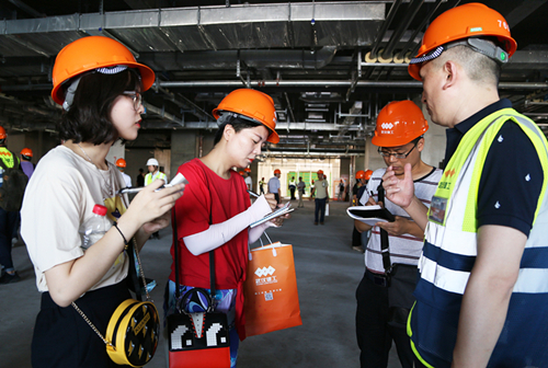 在觀摩會主會場,湖北省建管局副局長葉兵主持并通報2017年上半年全省安全生產(chǎn)形勢,武漢市城建委建管辦主任周才志致辭,亞洲醫(yī)院項目經(jīng)理交流發(fā)言,湖北省住建廳領(lǐng)導(dǎo)李斌作總結(jié)講話。亞洲醫(yī)院項目部經(jīng)理楊勤講到,武漢亞洲醫(yī)院項目是國內(nèi)唯一同時具備“魯班獎、LEED-HC金級認(rèn)證及JCI認(rèn)證”三大獎項和認(rèn)證追求的項目,建設(shè)完成后將成為國內(nèi)頂級,國際一流的綜合性醫(yī)療技術(shù)中心和綠色環(huán)保、人性溫馨的康復(fù)服務(wù)中心,項目部運用新技術(shù)、新工藝、新材料對質(zhì)量進行全程管控,項目全過程采用BIM技術(shù)輔助施工,配合天寶放線機器人及3D掃描儀等設(shè)備提高現(xiàn)場施工精度;在安全文明施工管理方面項目部致力革新觀念,以人為本,打造花園式溫馨工地,施工現(xiàn)場綠化全覆蓋,噴淋降塵系統(tǒng)、雨水回收系統(tǒng)等切實做到“四節(jié)一環(huán)?!钡囊蟆?